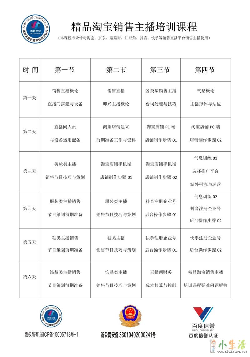 授课方式:科班理论教学+真实直播演练+电视台录制设备+店铺合理架构+站外